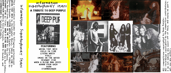 All compositions are copyrighed by the respective incarnations of Deep Purple, and all recordings are copyrighted by the artists featured here. This is totally a non-profit venture: I am not making any money out of this, and suing me won't you get any either.