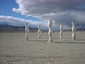 After I watched the sun rise, I hiked out on the playa far from the camps listening to the music from different trance camps at the edge of the city and admiring the beauty of Nature around me. The desert was so vast and flat that I felt as though I was just walking on air. The mountains and the playa seemed to part with each step I took and the music seemed to whirl in and out of my ear. The whole design of Burning Man was to create a surreal and psychedelic experience: from the shape of the body created by green lasers to the various trance/techno camps, all set in the middle of a desert surrounded by mountains, if one just stood for a while and listened and watched, one would sense various images and sounds moving in and out at the edge of their perceptions. Particularly with regards to sounds, you could focus your ear on one trance camp for a while and suddenly move it to another and so on and back and forth (i.e., essentially creating your own mixesi n your ear). This definitely creates a dream-like atmosphere and gave me a new-found understanding of the soaring feeling that trance music imparts (which I've always liked).